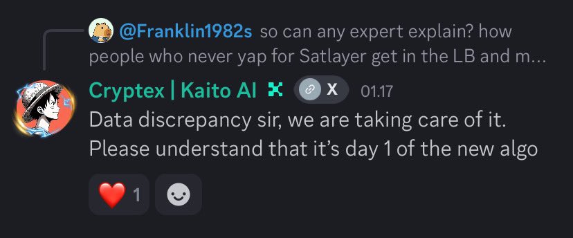 @0xRecruiter @KaitoAI @arbitrum Cryptex says it's being worked on. just be patient, it's only the first day of the new algo https://t.co/vww3tyd4Kn