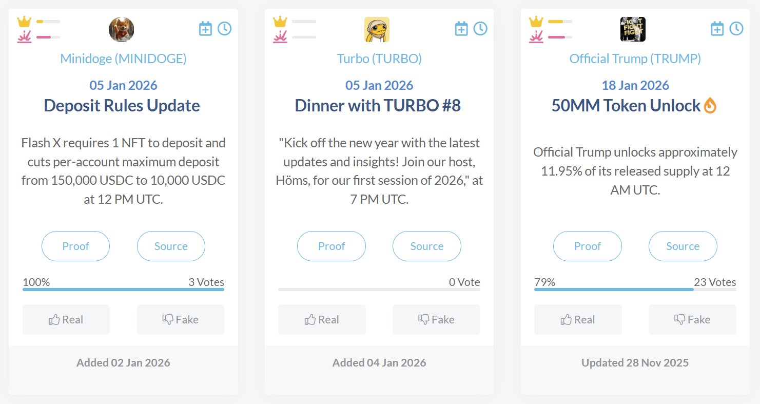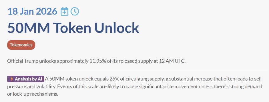 CoinMarketCal lists recent memecoin events, TRUMP unlock may cause sell pressure.