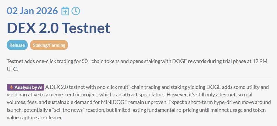 Three meme coins MINIDOGE, TURBO, and TRUMP will have updates, community events, and token unlocks in January 2026.
