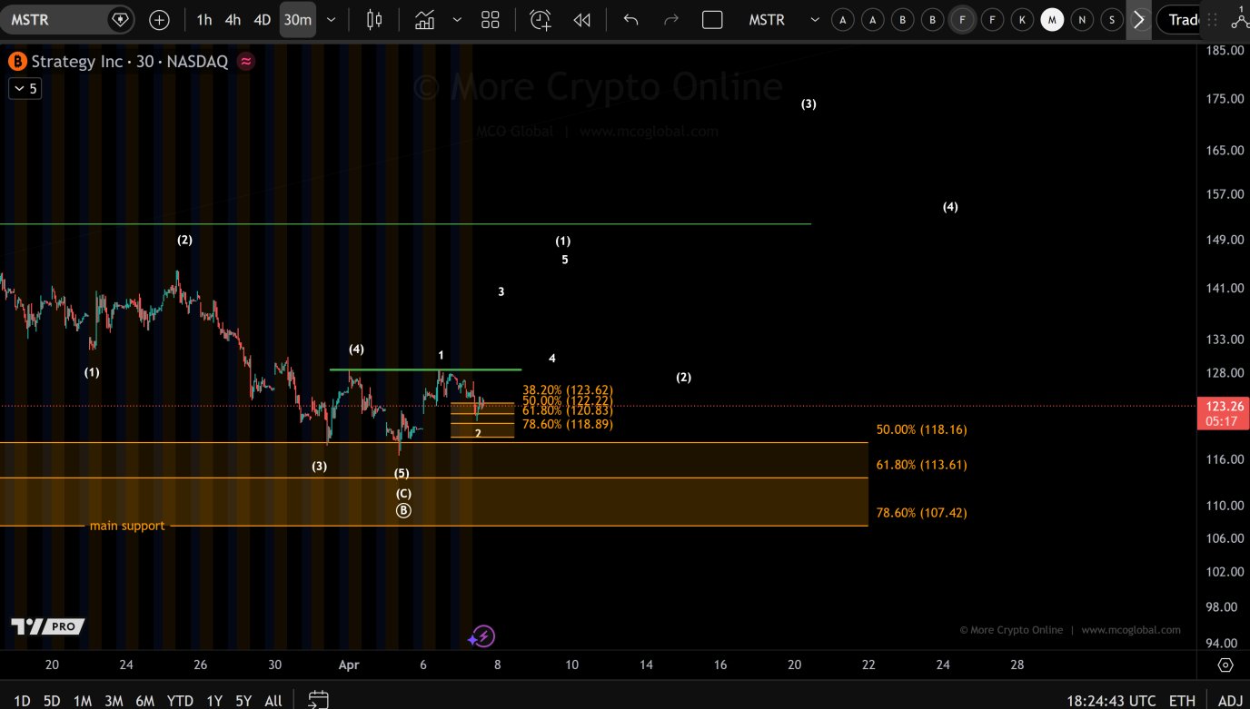 MSTR correction is complex, need to wait for 5-wave structure to confirm larger uptrend.