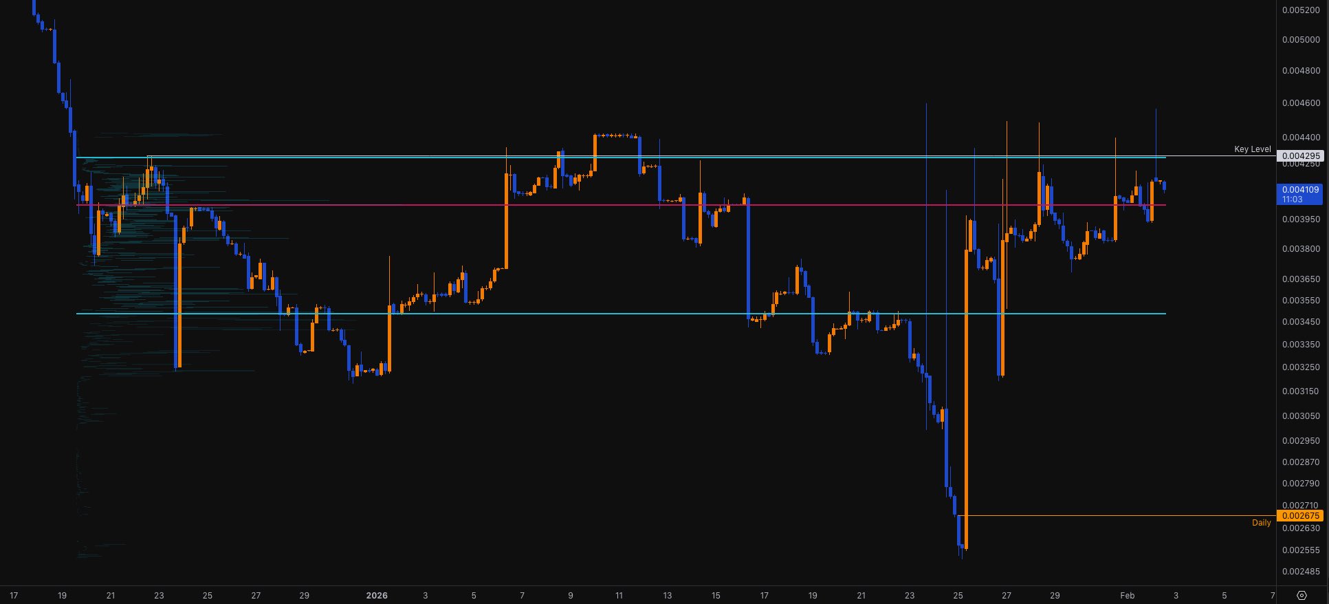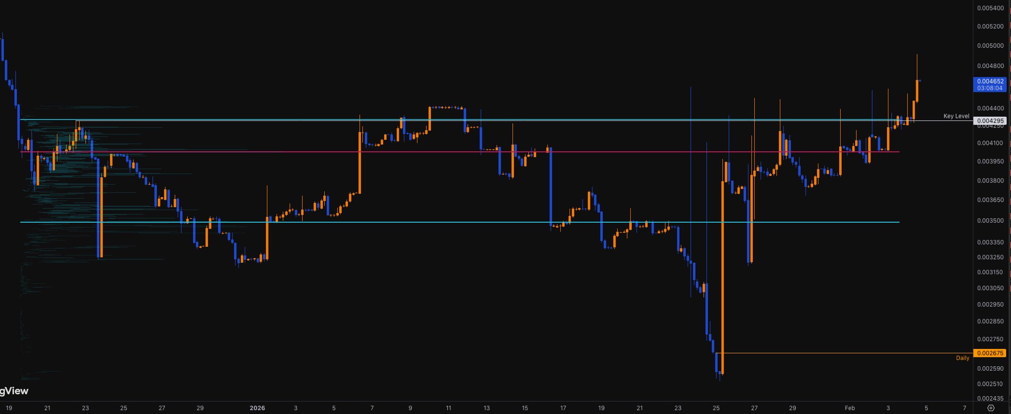$NLS still struggling around this Key Level. However the retracements are getting smaller and it makes a HH with every push which could finally lead to breakout above $0.0044 🤓 https://t.co/H2PotywQqB