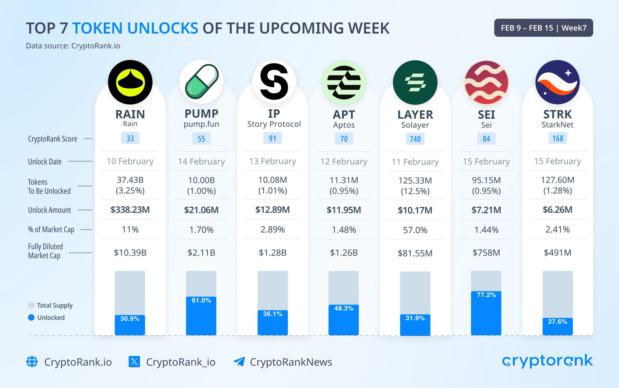 Upcoming token unlocks this week 🔓