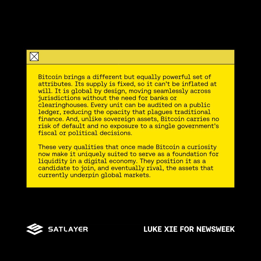 Bitcoin’s inherent technical strengths, coupled with institutions’ vested interest in its success, position it to evolve into the essential infrastructure powering global markets 🟨 https://t.co/S7prUmr40n