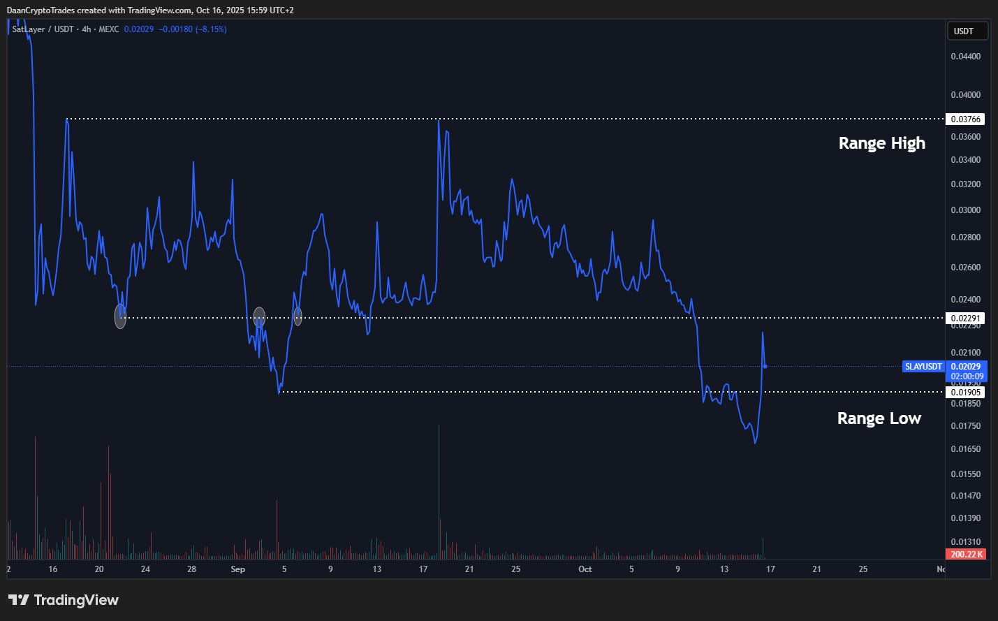 DaanCrypto is bullish on SLAY's potential in the Bitcoin infrastructure sector, seeing upside if it breaks $0.23, and emphasizes Bitcoin's value as global market infrastructure.