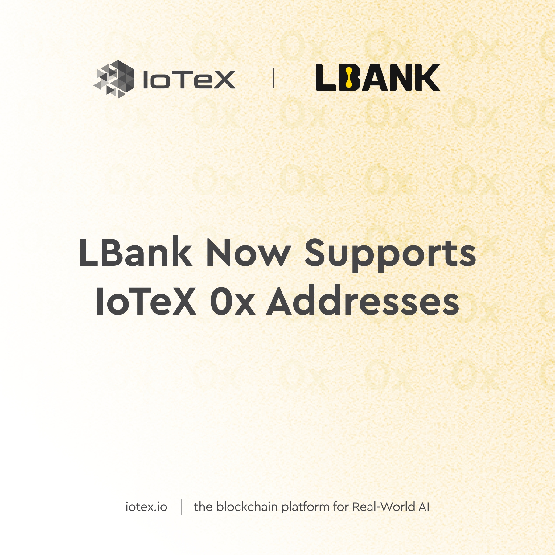 another major step forward for IoTeX: @LBank_Exchange has rolled out full support for 0x-format IOTX addresses. this upgrade follows IIP-40's plan to unify IoTeX under a single, unified address format. moving from the legacy “io1” format to “0x” creates a cleaner, more consistent experience across the entire IoTeX ecosystem and reduces friction for users and developers. with LBank now onboard, more of the IoTeX ecosystem is converging on a single, intuitive address standard that supports our growing real-world AI vision.