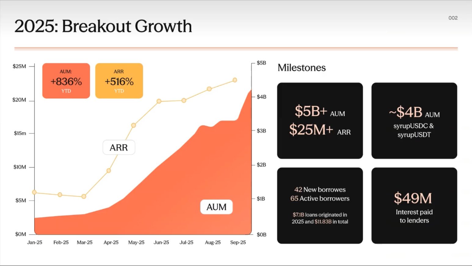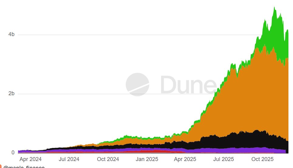 128 65 4.45K Original >Tendance de SYRUP après le lancementExtrêmement haussierMaple Finance’s AUM surpassed $4 billion in 2025, and it posted zero losses amid severe market volatility, showing extremely strong performance.