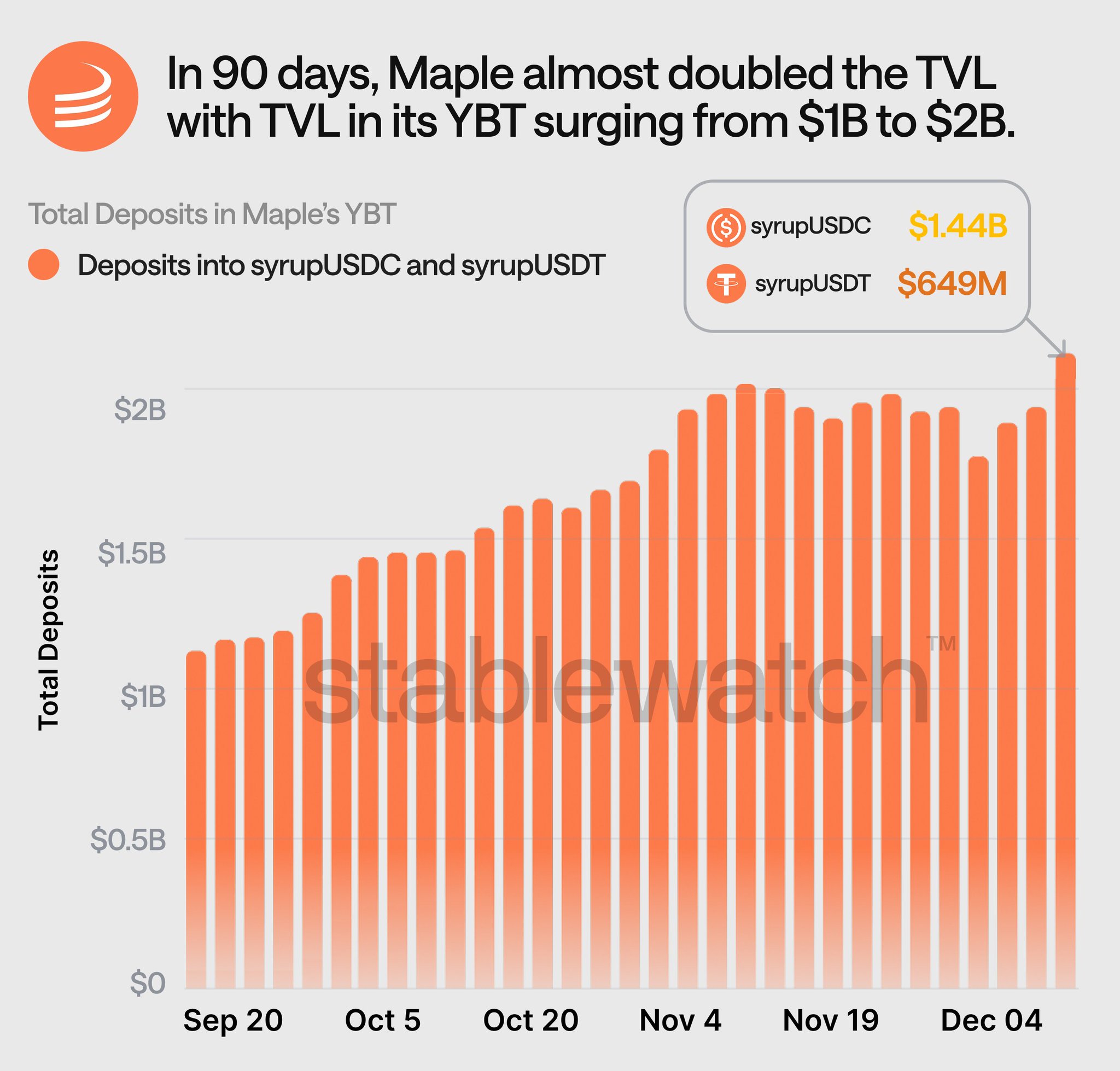 stablewatch D8.00K @stablewatchHQ.@maplefinance’s syrupUSDC and syrupUSDT together just crossed $2B in total supply. That’s nearly a doubling in just 90 days! https://t.co/PCASu7gwaU