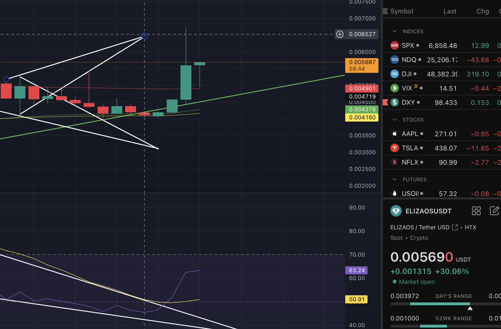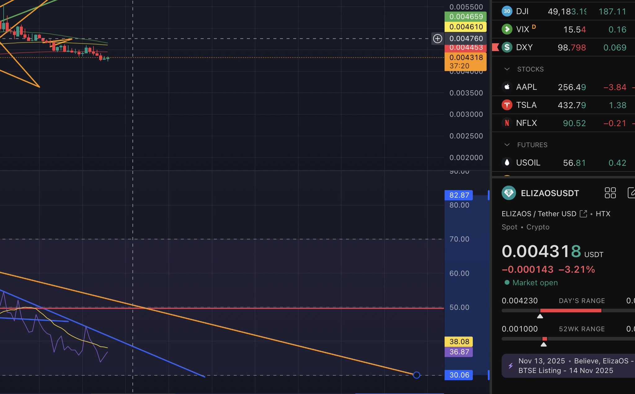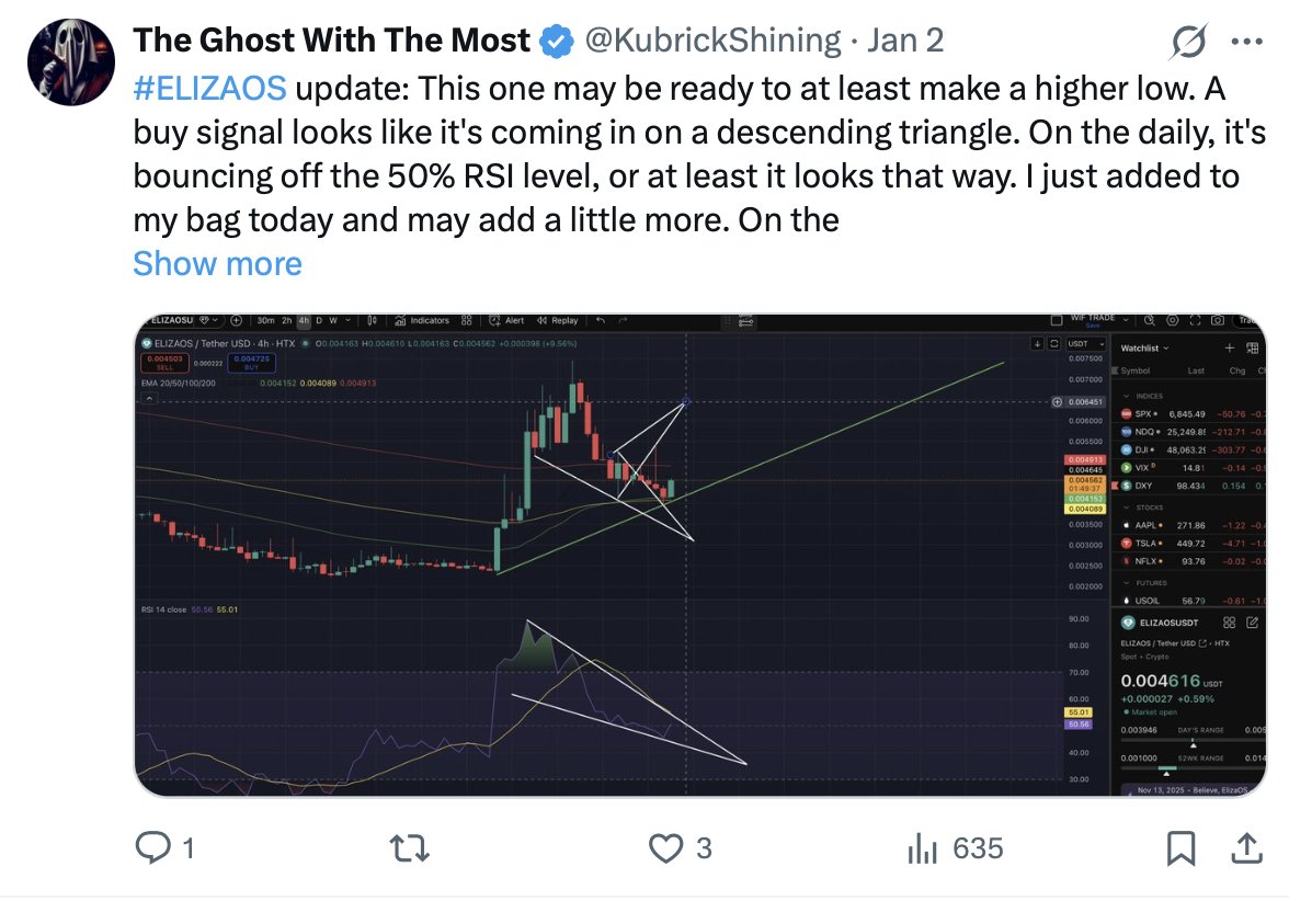 $ELIZAOS update: Maybe a premature move up to 0.0047 for a rejection. I'm still looking for oversold areas on the 2hr. https://t.co/DN977QzNC2