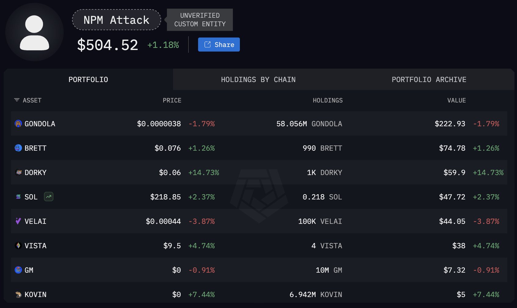 [ARKHAM] Largest NPM Supply Chain Attack in History Nets Less Than $505 So Far https://t.co/uMSl9HgYIv