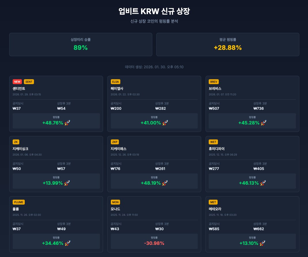 I analyzed the price increase from the moment the Upbit listing announcement appeared until trading opened.