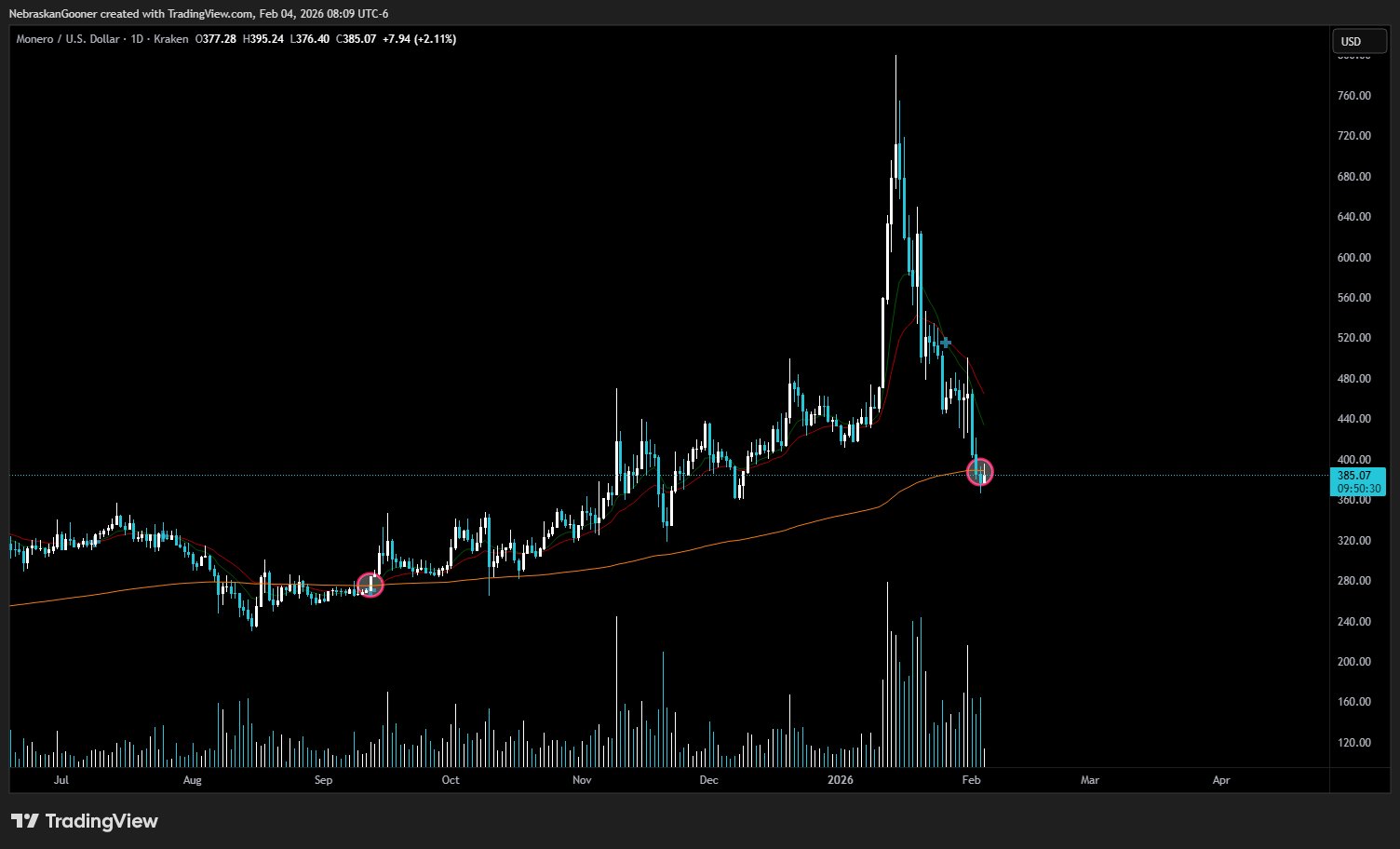 $XMR back below the 99smma for the first time since September.