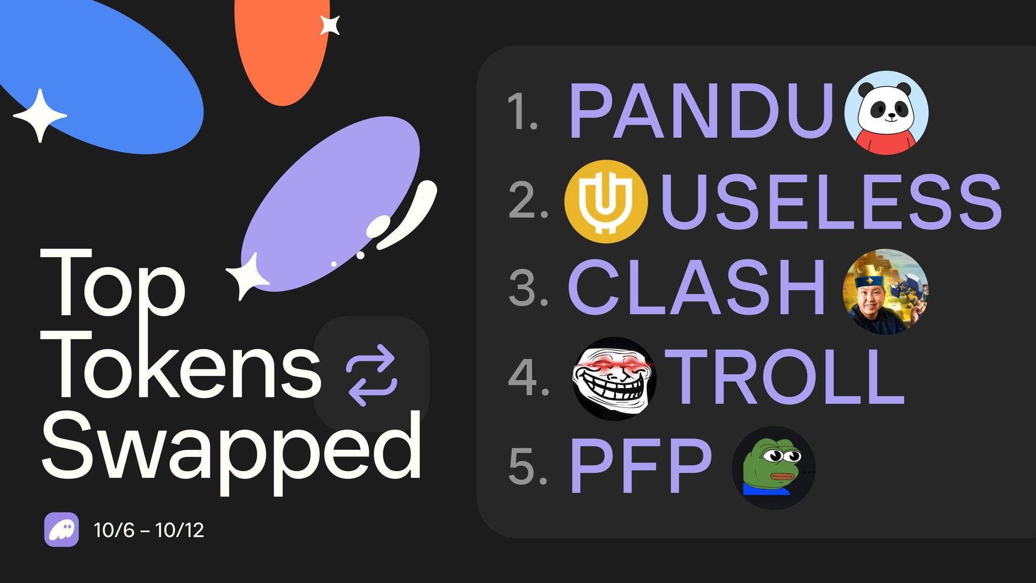 🚨 $PANDU (@Pandupandas) ranks #1 among the top tokens swapped on the @phantom in-wallet swapper last week https://t.co/hsNb00o835