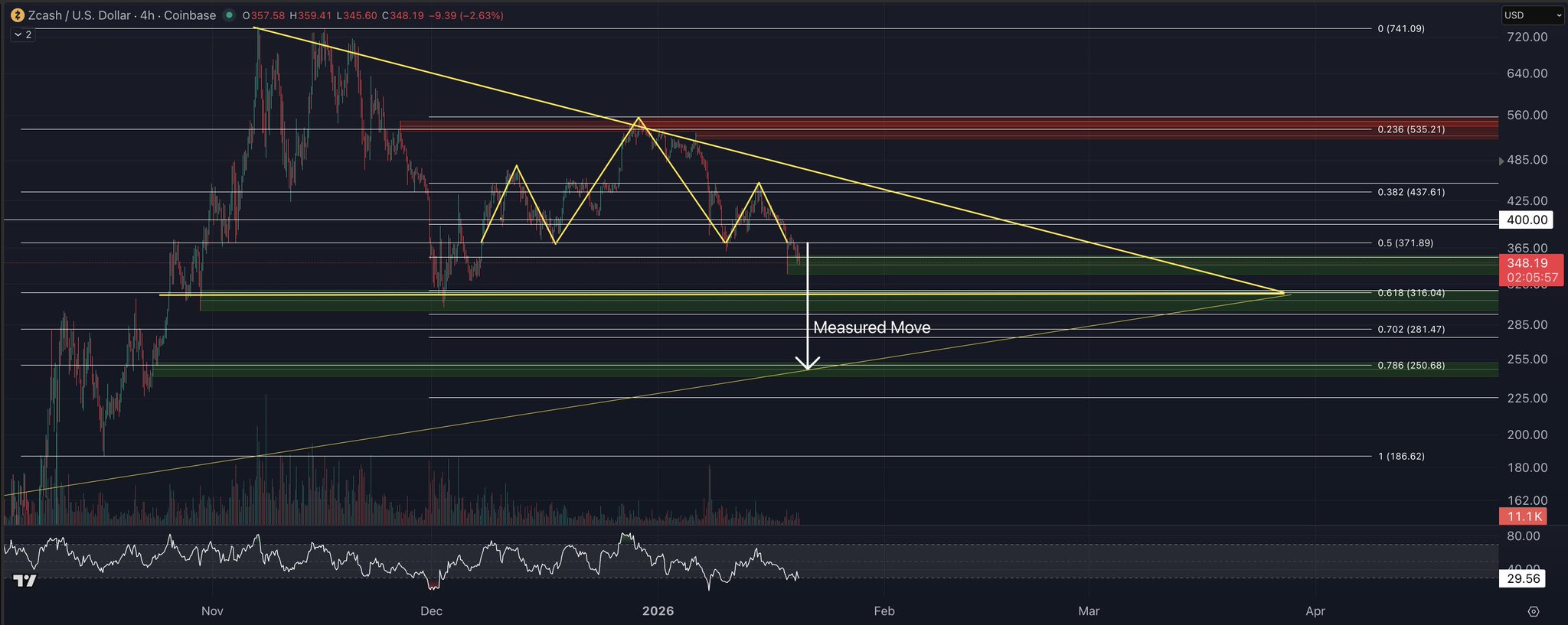 - ZEC의 출시 후 추세하락세