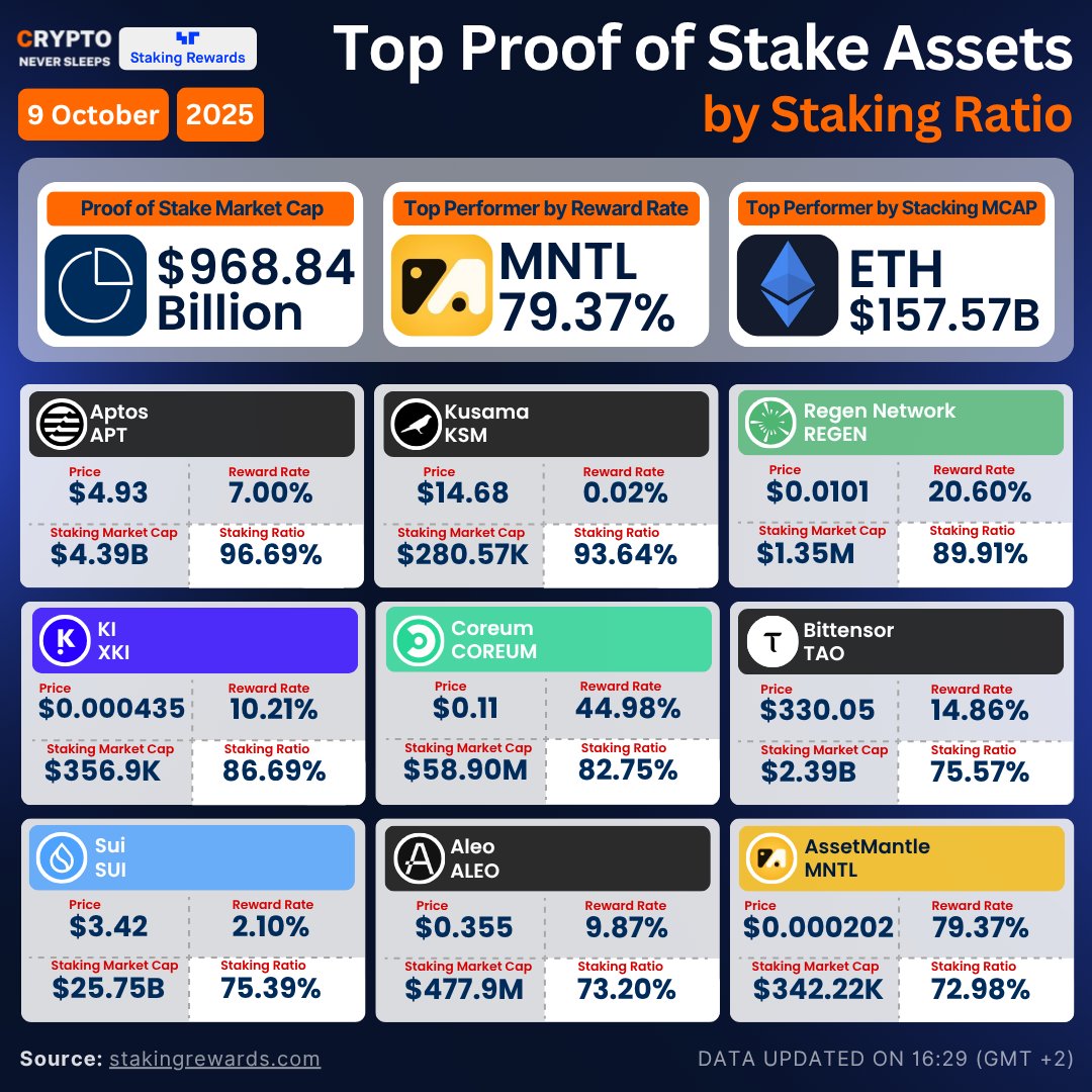 🔥 Top Proof of Stake Assets (Oct 9, 2025) 🔥