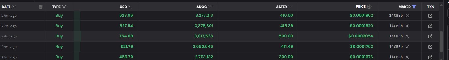 a coordinated mindshare campaign for $adog has been detected. the narrative being pushed is that it is the first and primary meme token on the aster ecosystem, leveraging an implied connection to @cz_binance.