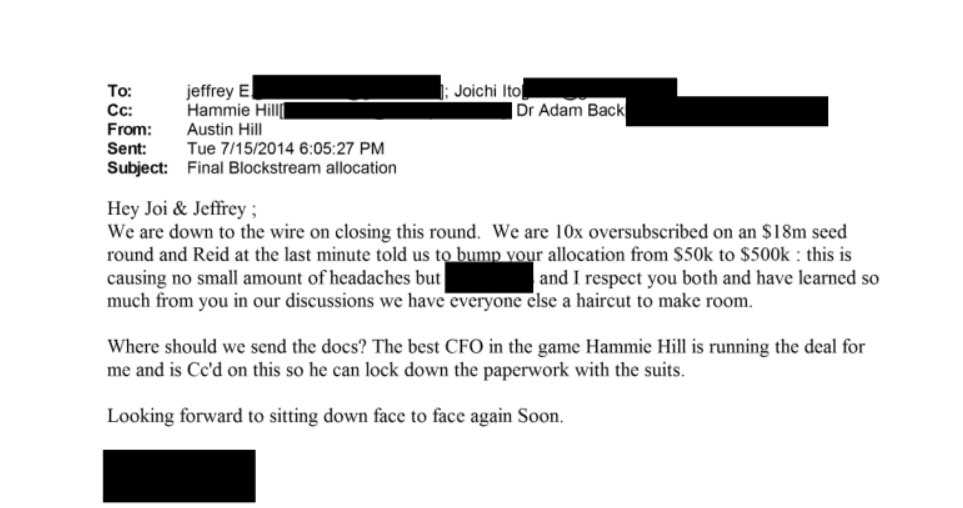 Epstein invests at least $500,001 into Blockstream with his associate Joichi Ito. This directly ties Epstein financially to a for profit company connected to influential Bitcoin Core developers. https://t.co/LfKbYaRIuF
