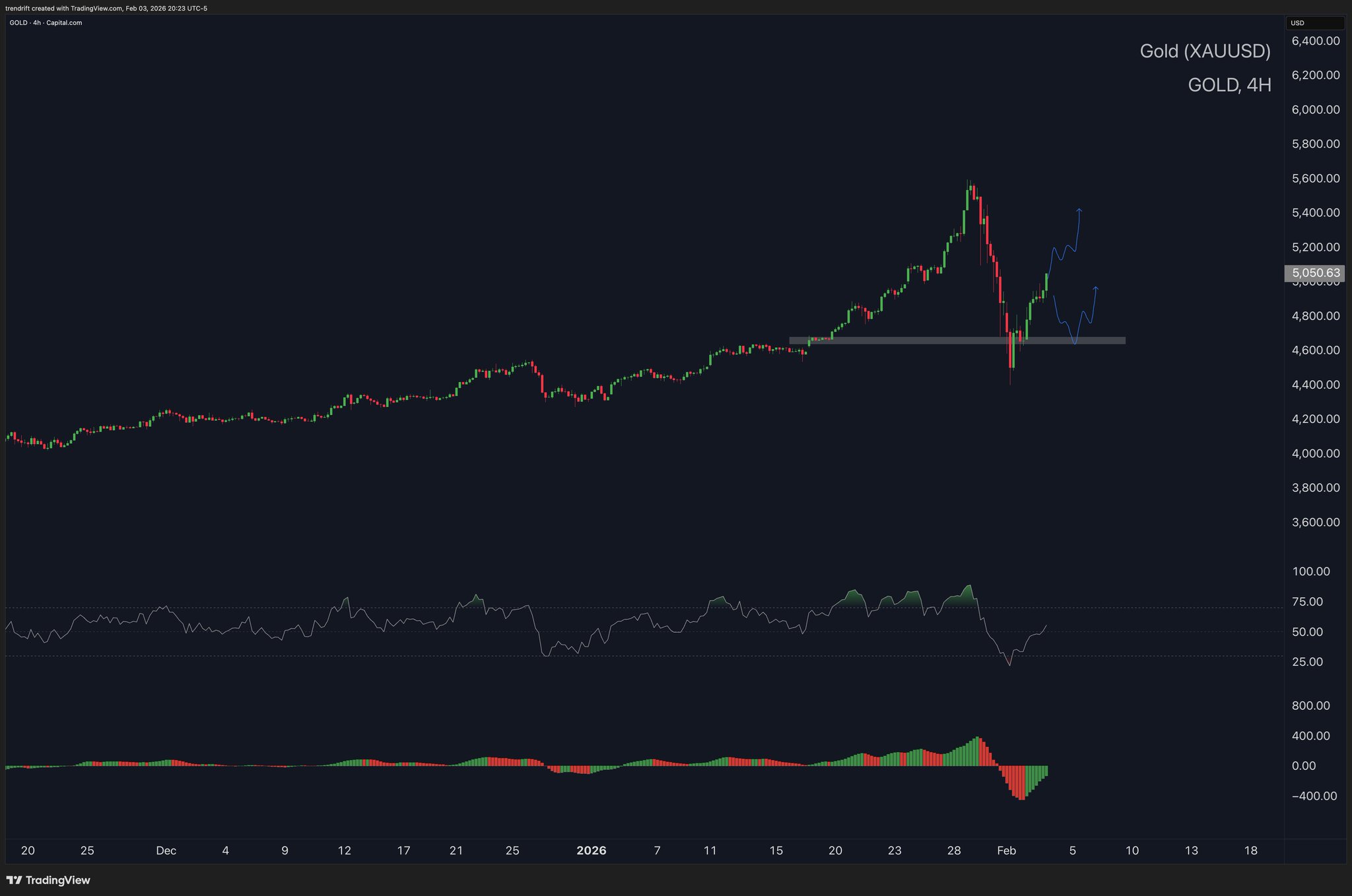 Gold is reaching a potential cycle top, RSI is overbought, indicating capital will rotate into Bitcoin.