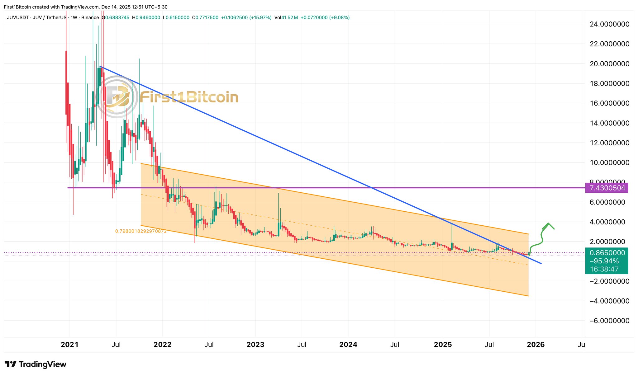 After a multi-year downtrend and a ~96% drawdown from ATH, $JUV is breaking its long-term descending trendline.