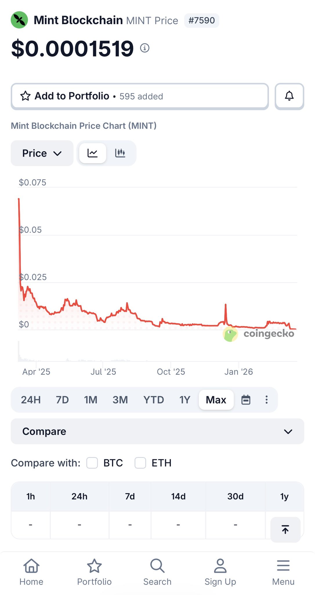 Track the price of Mint Club V1 for today, 7 days, 30 days and 90 days