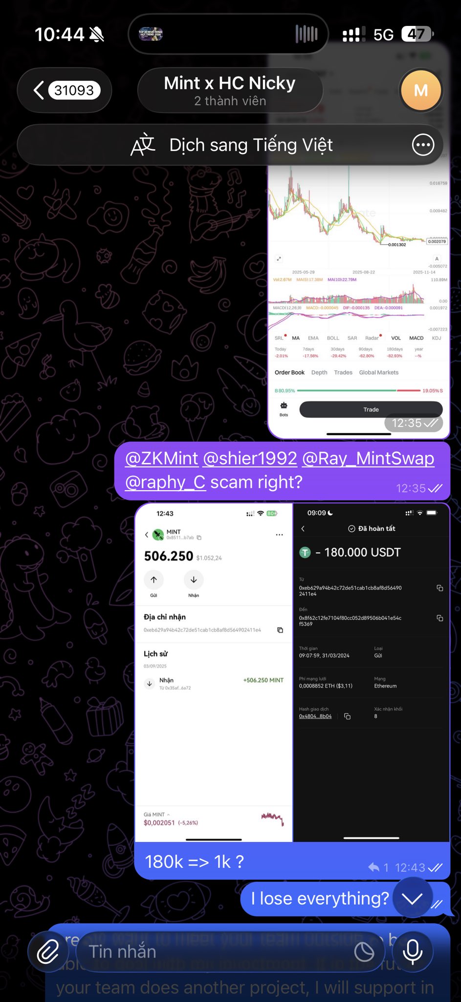 The author accuses the Mint Blockchain project of being a scam, causing his $180,000 investment to be almost completely lost.