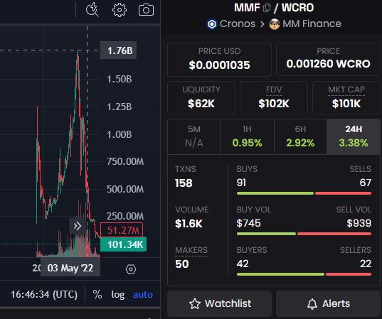MMF was the most successful Dex aggregator on Cronos, with a market cap of $1.76 billion, now declined but its router remains active.