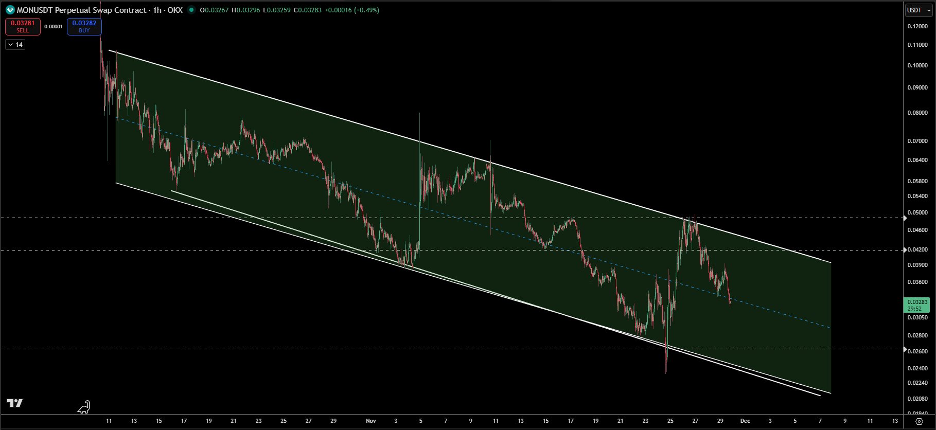 Monad chart shows a clear downtrend, but the author still lists it among the chains they watch.