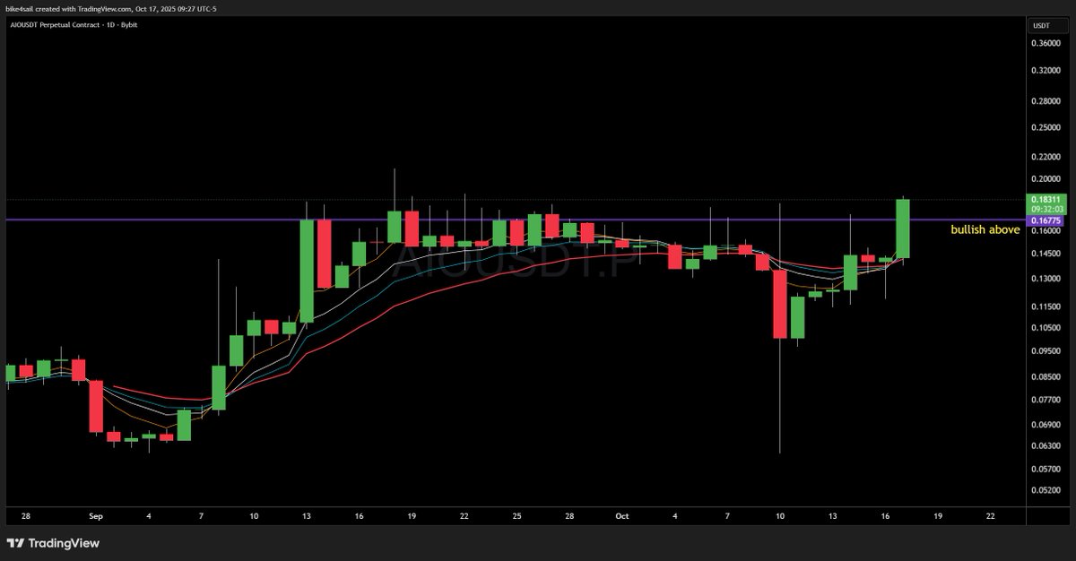 Daily view for $AIO. Any daily candle below would invalidate trade. All EMAs turning up https://t.co/LOKEp42F6P