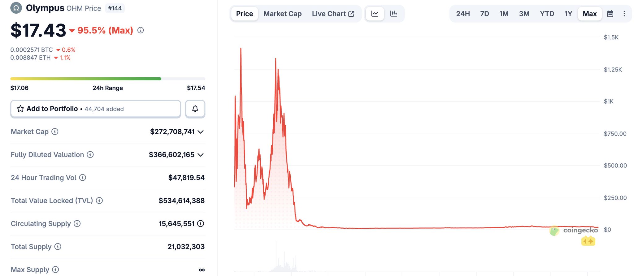 Olympus OHM price plunged 95.5%, warning of massive risks in lending protocols.