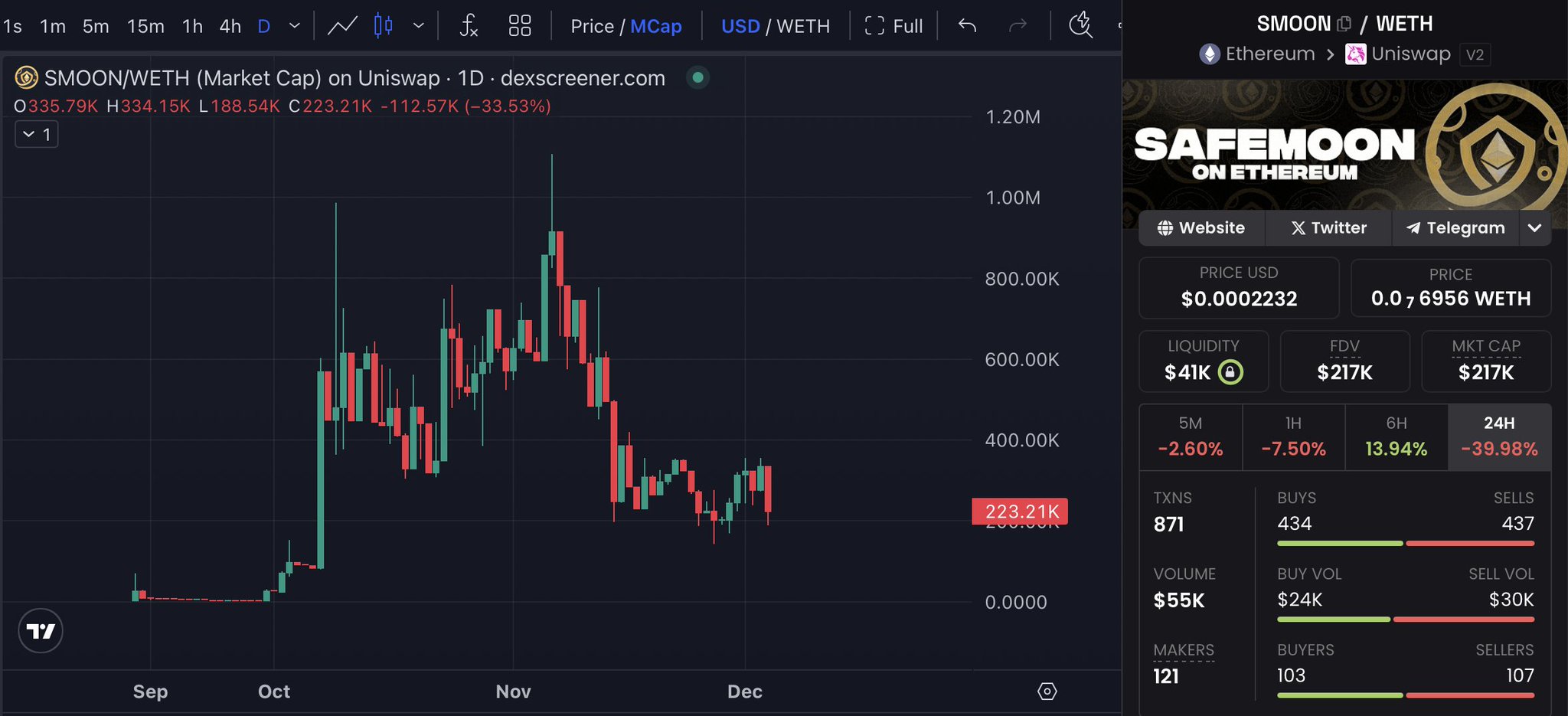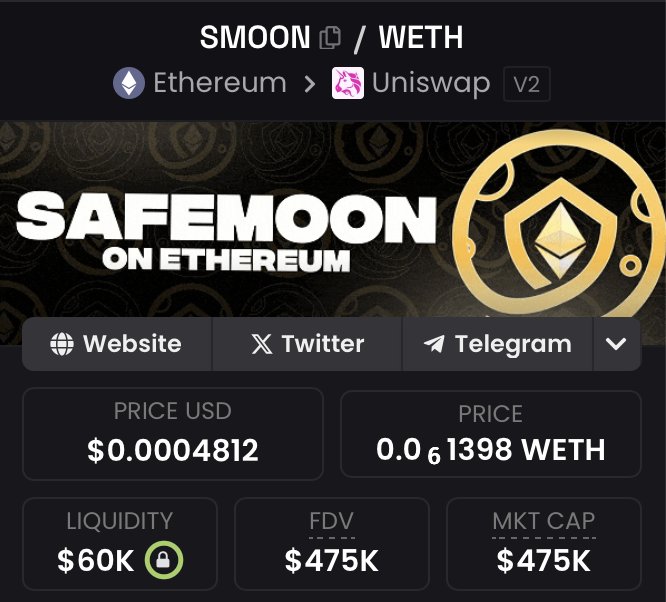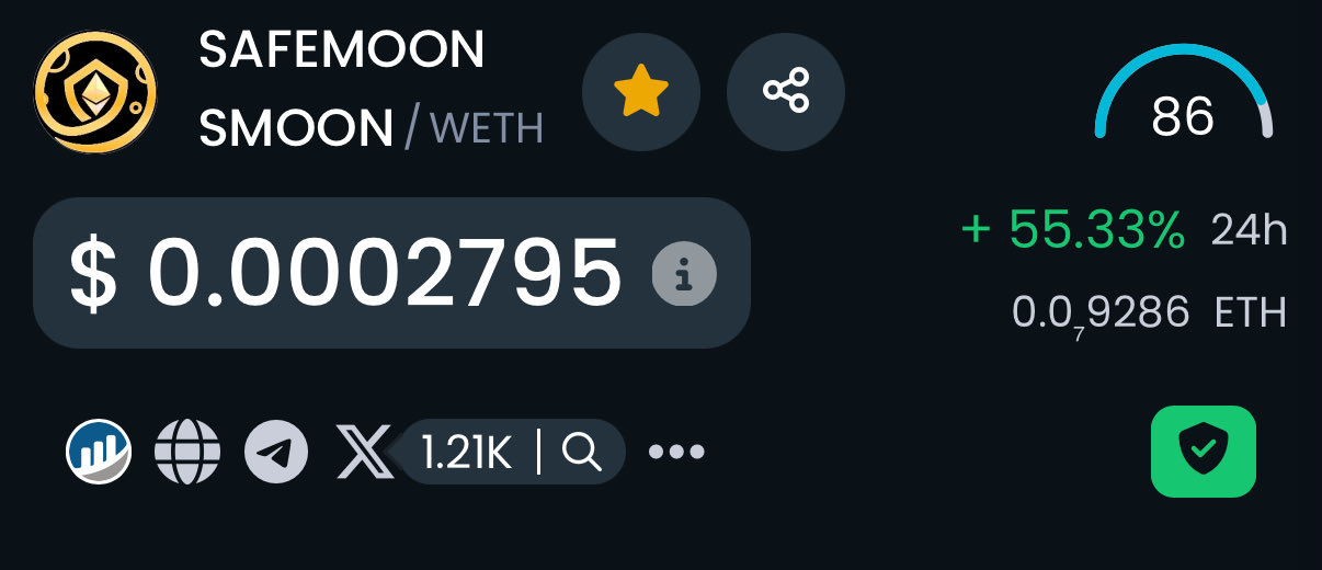 SafeMoon $SMOON on Ethereum is up 55% today. https://t.co/3vcWcHr0TK