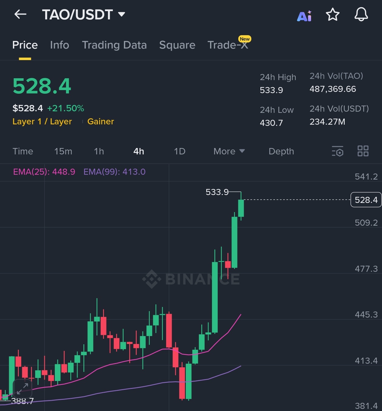 The tweet predicts that $TATSU will soon follow the recent significant rise of $TAO, implying potential upside for $TATSU.