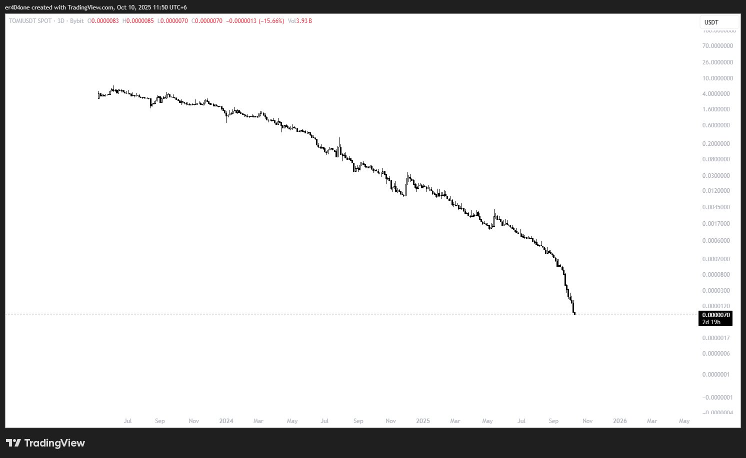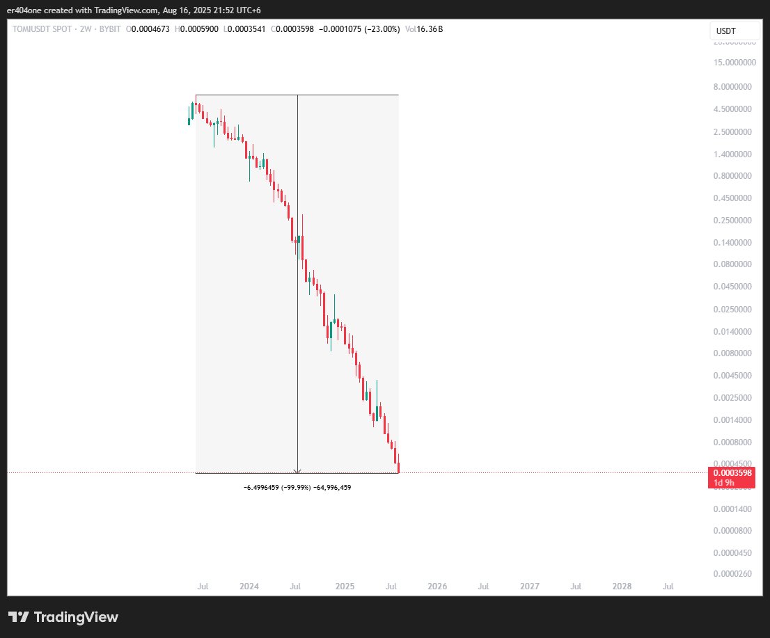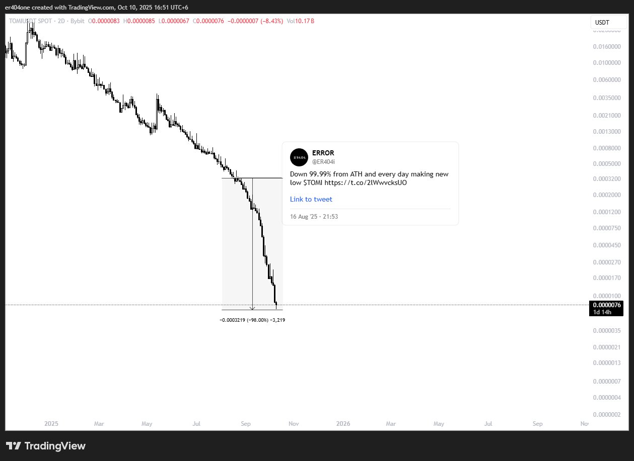 Down 99.99% from ATH and every day making new low $TOMI https://t.co/2lWwvcksUO