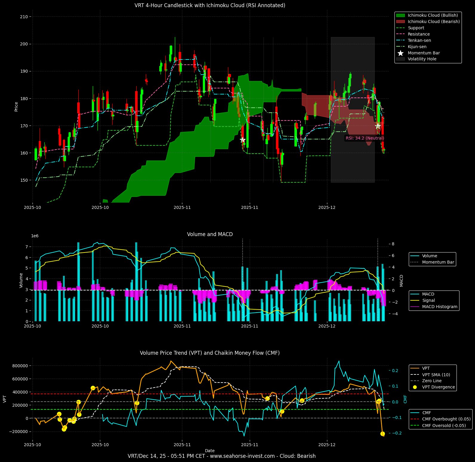 VRT short-term momentum is weak, the 4‑hour chart is clearly bearish, there is a lack of buying demand, and it does not meet breakout conditions.