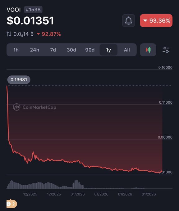 VOOI is called a 'scam' by the author, its price has plummeted more than 90% due to zero utility and overhyped promotion.