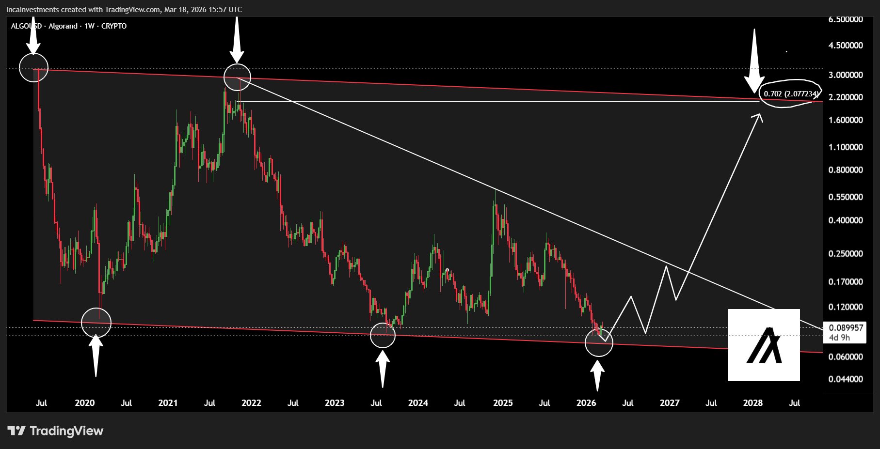 Algorand Foundation Founder Community_Lead C208.21K @AlgoFoundation2 1 50 Original >Tendência de ALGO após o lançamentoBearish