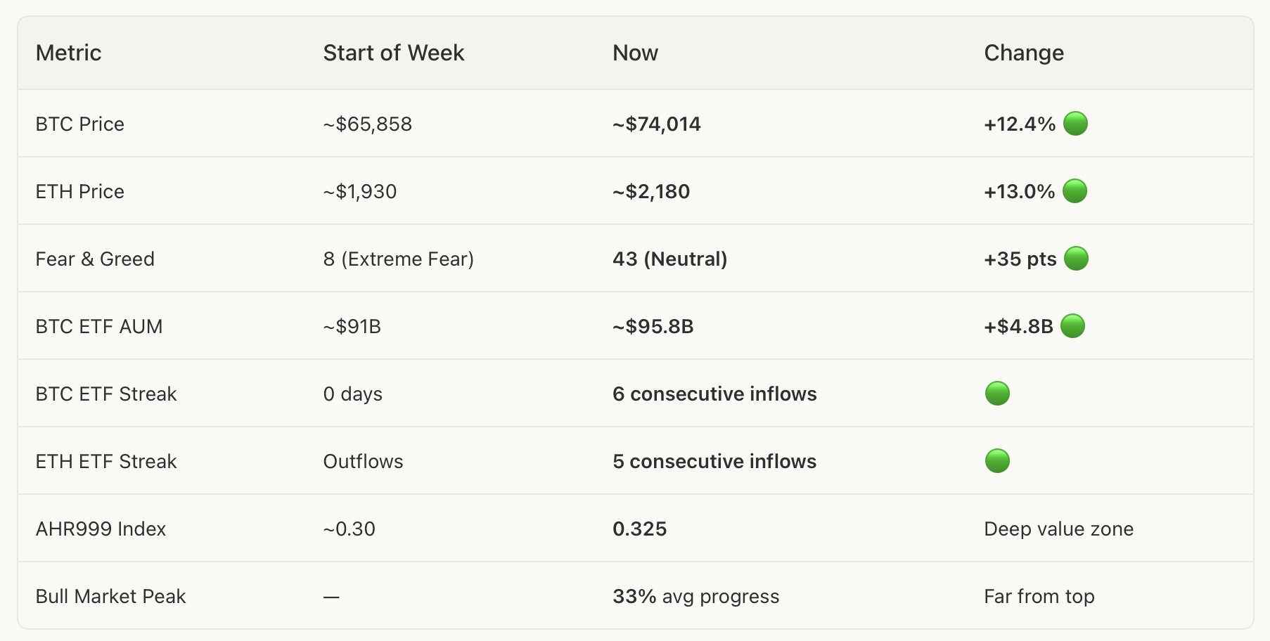 - Tendência SSI (7D)Preço (7D)Distribuição de SentimentosExtremamente Bullish (16%)Bullish (38%)Neutro (12%)Bearish (25%)Extremamente Bearish (9%)Insights de SSI
