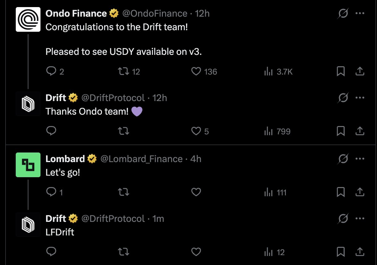 katexbt.hl DeFi_Expert Researcher B25.26K @katexbtIf Solana succeeds and gets back to previous highs, given the perpdex craze and stacked partnerships, $DRIFT is most definitely going to be one of the beneficiaries - much more than any other solana defi token (that are currently out and belong to that cohort) https://t.co/1jyPHwsYlr