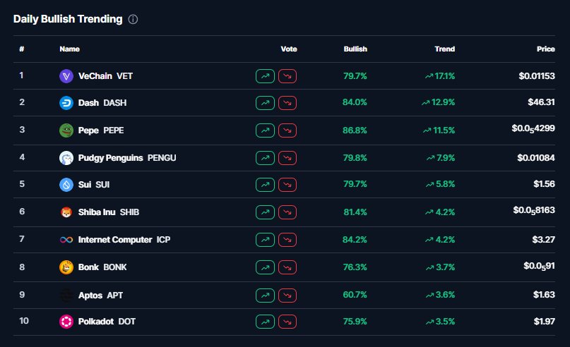 - Tendência SSI (7D)Preço (7D)Distribuição de SentimentosBullish (100%)Insights de SSI