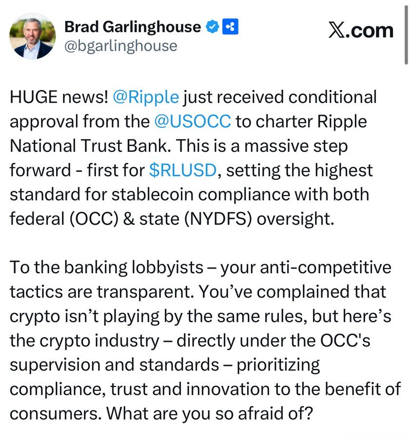 Brad Garlinghouse Founder Regulatory_Expert S1.29M @bgarlinghouse32 5 794 Original >Tendência de XRP após o lançamentoBullish