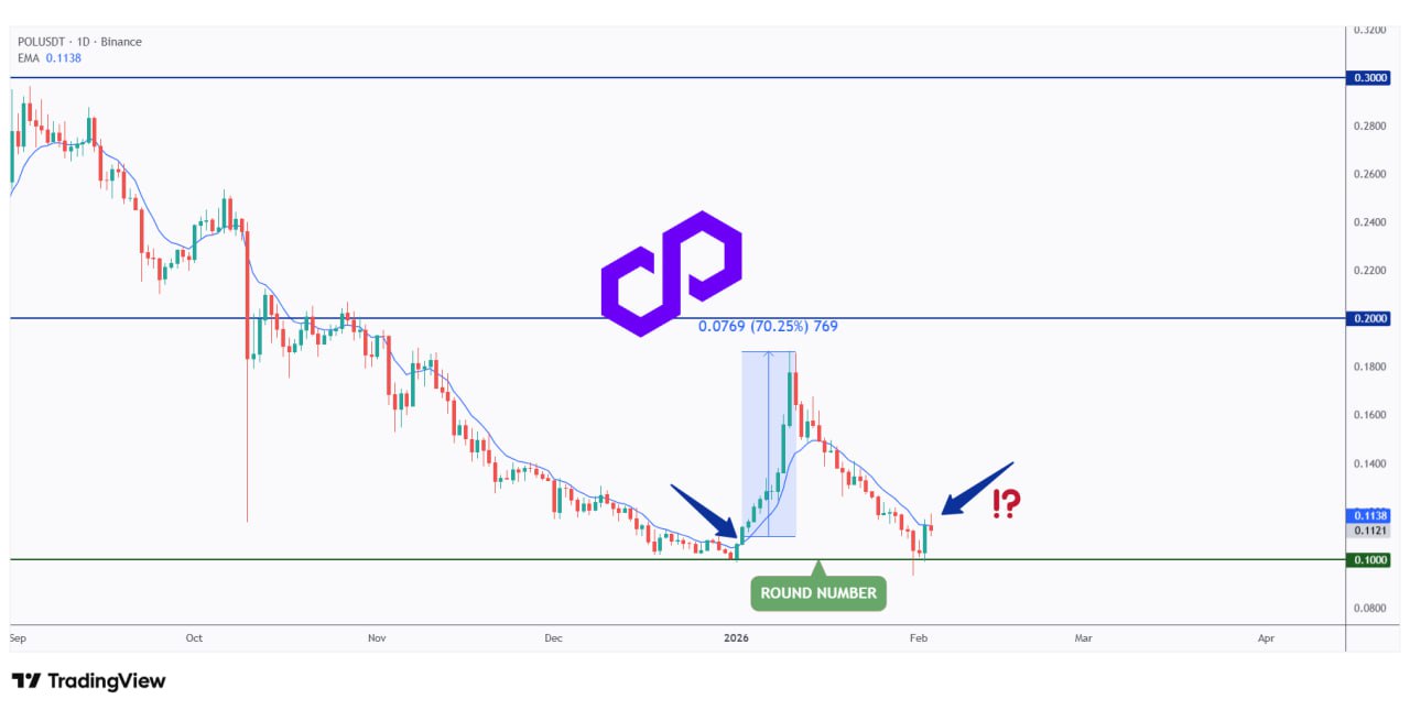 POL price retests the crucial $0.1 support; market wonders if the historic 70% surge can repeat.