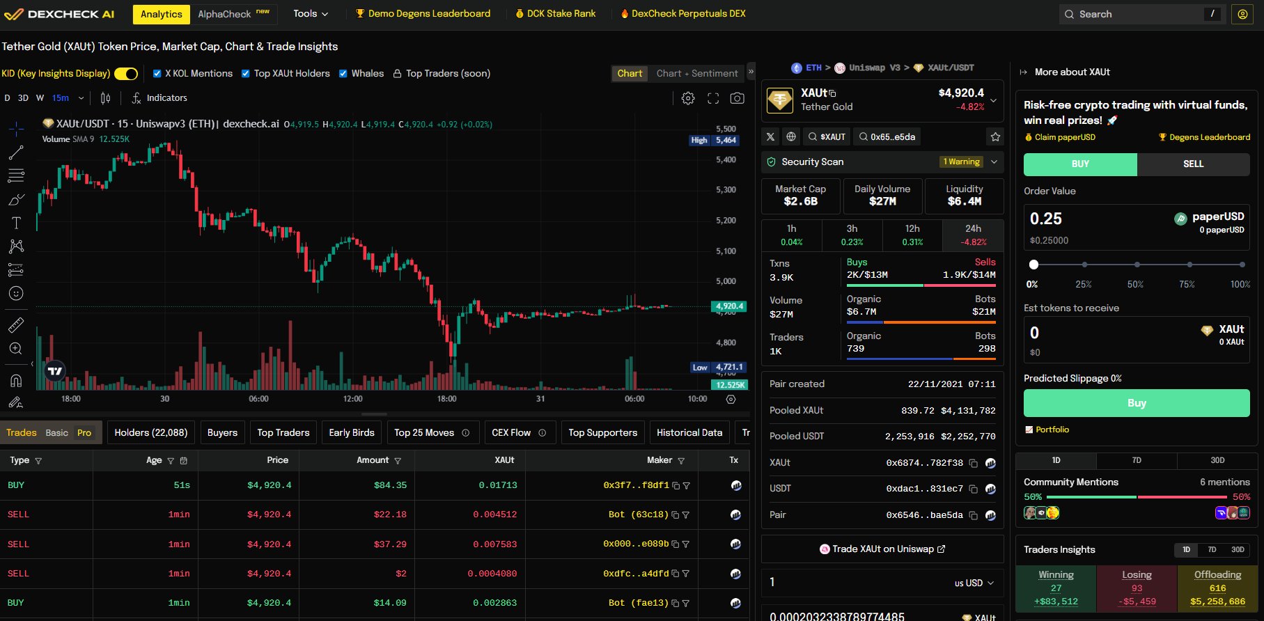 DexCheck AI OnChain_Analyst Media C121.94K @DexCheck_io94 9 8.03K Оригинал >Тренд XAUT после выпускаБычий- Тренд XAUT после выпускаЧрезвычайно медвежий