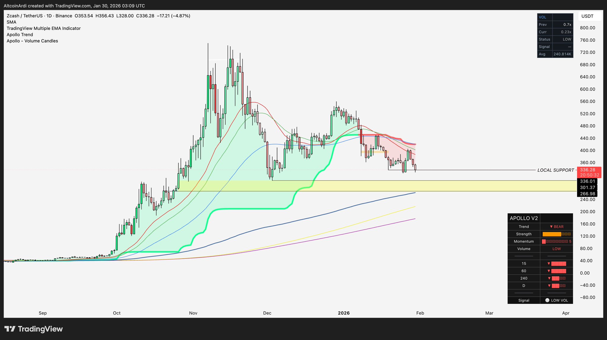 - Тренд ZEC после выпускаЧрезвычайно медвежий