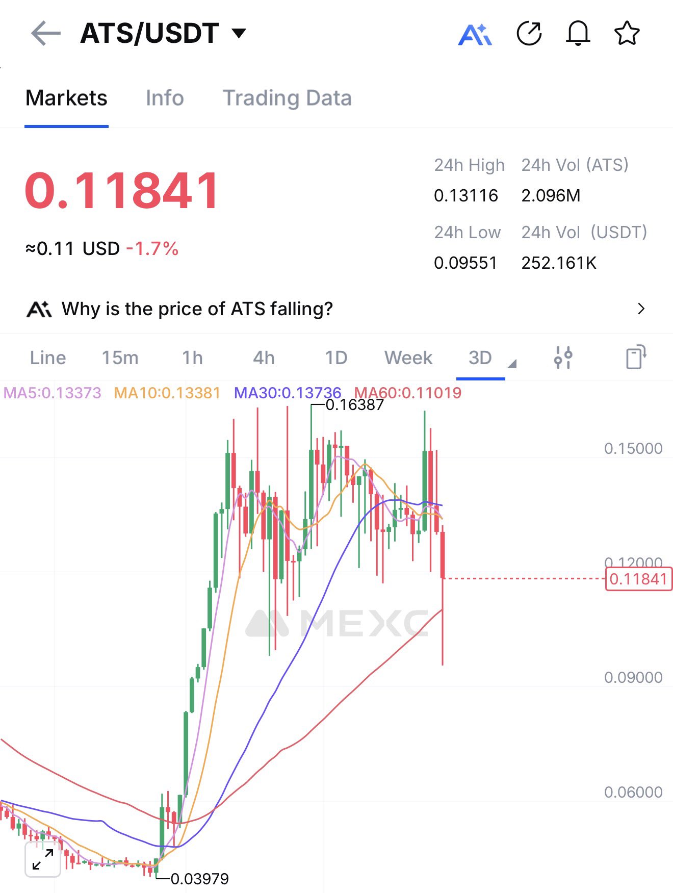 Overall market morale is low, there is no pleasant outlook; previously the $ATS I bought at the $0.13 level turned out to be one of the coins that survived.