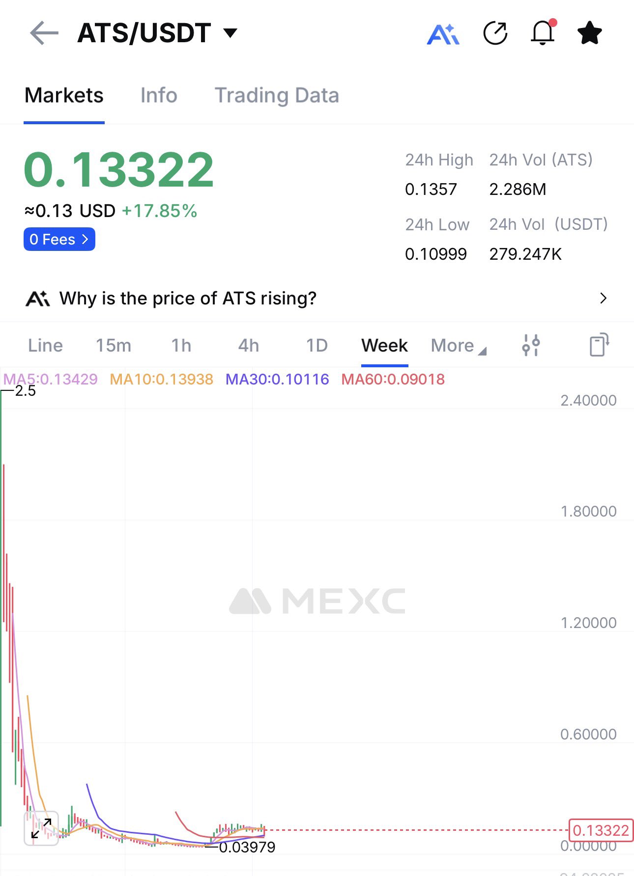 ATS is considered a good gem on Mexc, with the current price up 17.85%.