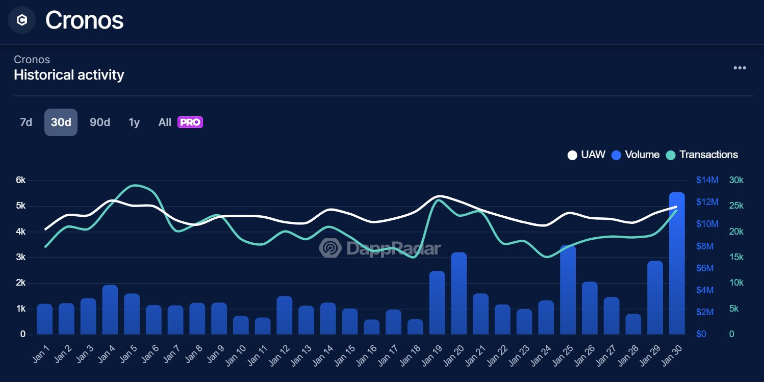 Wow, we have not seen volumes like this on @cronos_chain in a while. Almost $13 million DEX volume as the market nukes (and CRO nukes with it) on Saturday. As I said before, both greed and fear can make users transact on the chain.