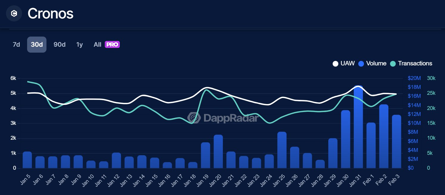Ever since the bloodbath on the weekend, @cronos_chain volume is back up 3-5x from prior weeks, depending on how you measure, averaging about 10m USD of DEX volume traded. https://t.co/mb31t7drSK