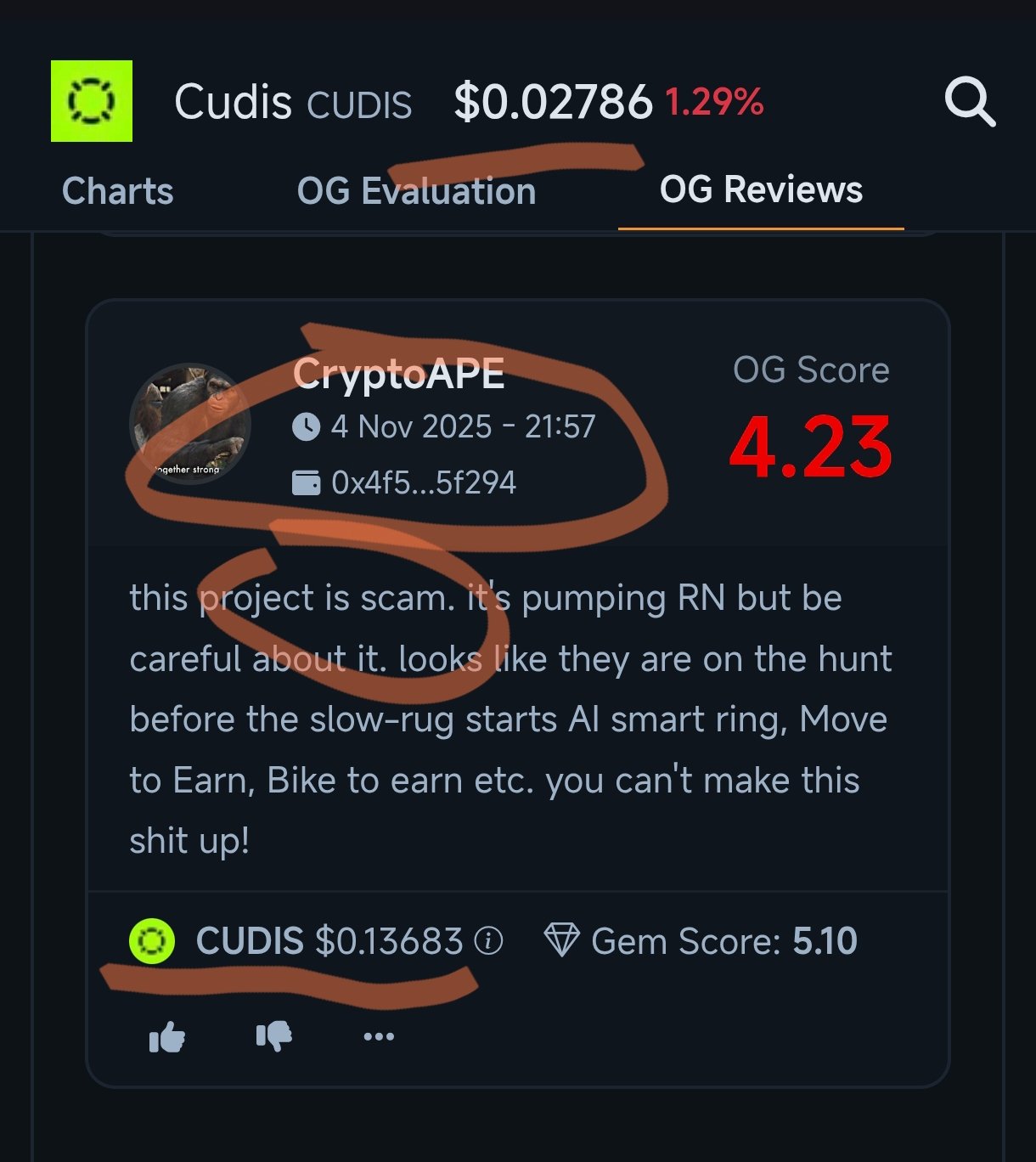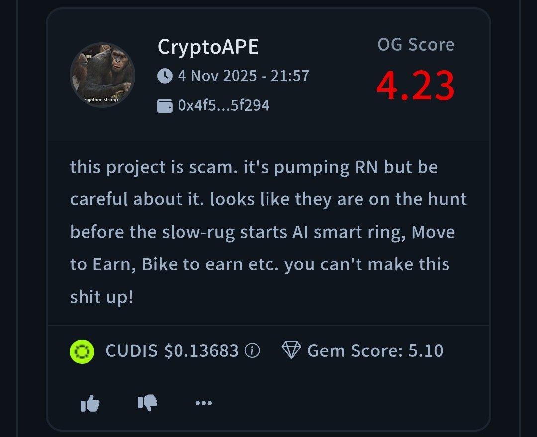 The CUDIS project has been warned by OGs of scam and slow rug pull risk, with an opaque team and overpriced product.
