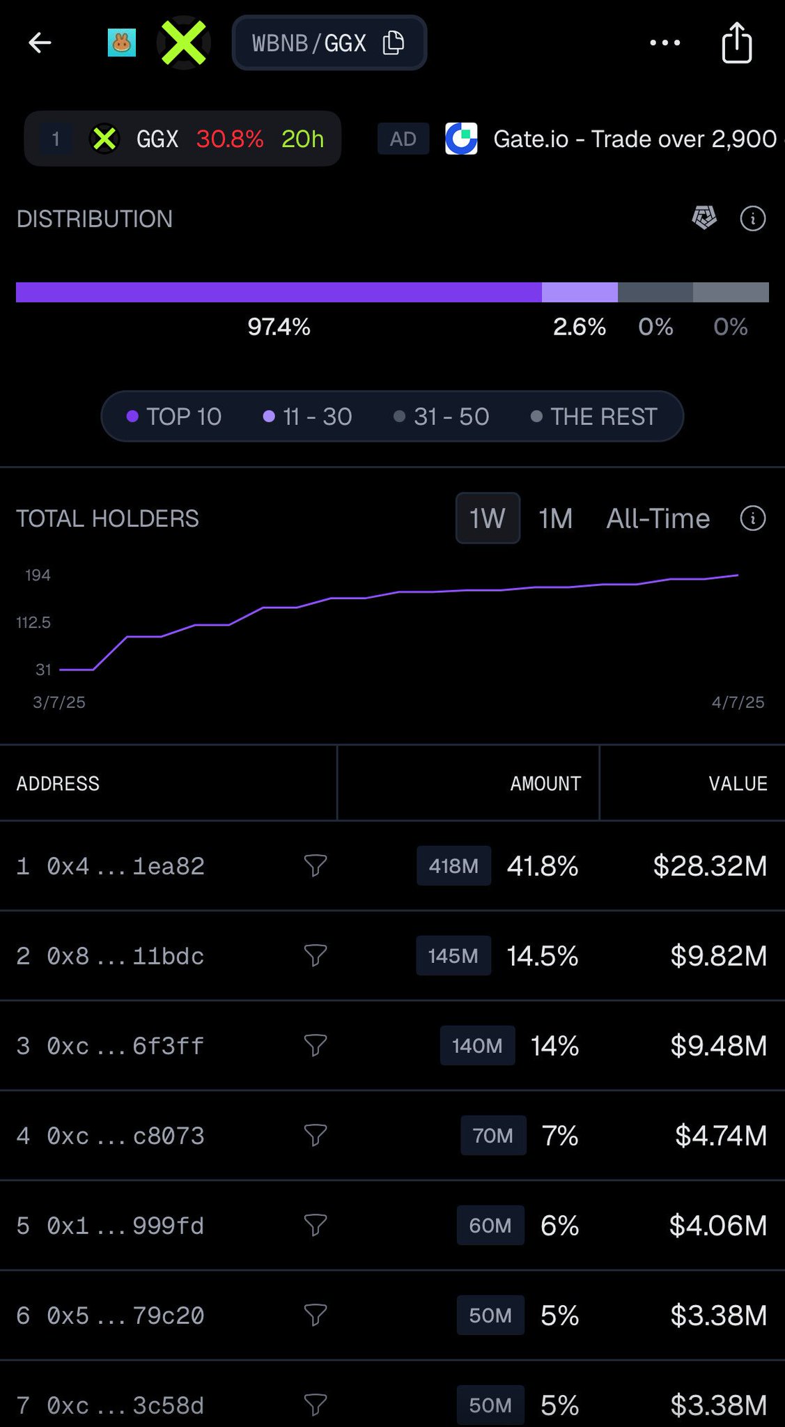 For example, $GGX supply is ultra-concentrated: the top 3 wallets control over 70% of the supply.