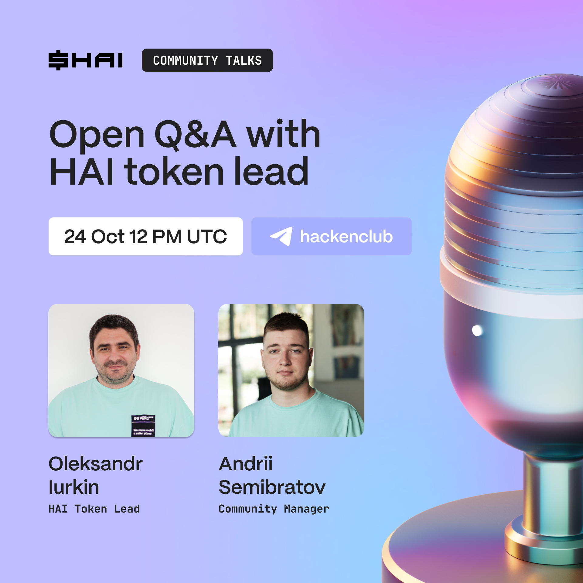 HackenAI will host a Q&A session with the HAI Token Lead to discuss the ecosystem's current status, future plans, and short-term roadmap.