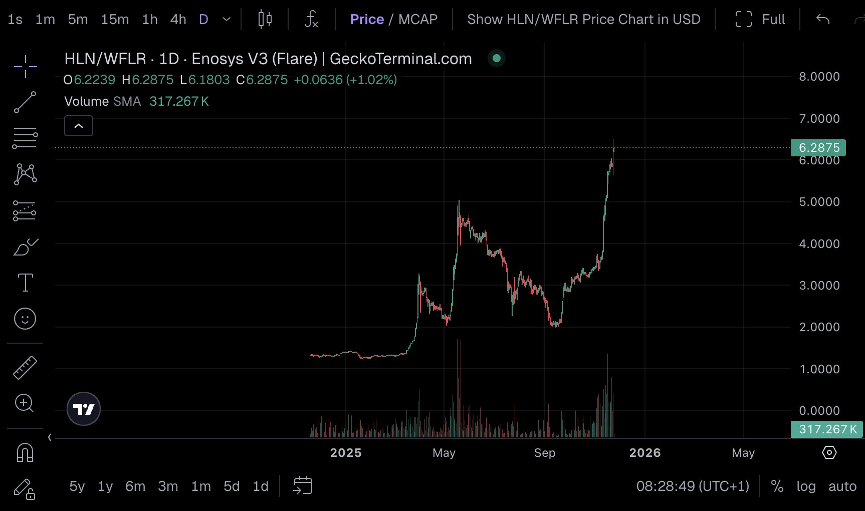 HLN/WFLR shows strong performance, price reached a historic high, indicating huge upside potential.