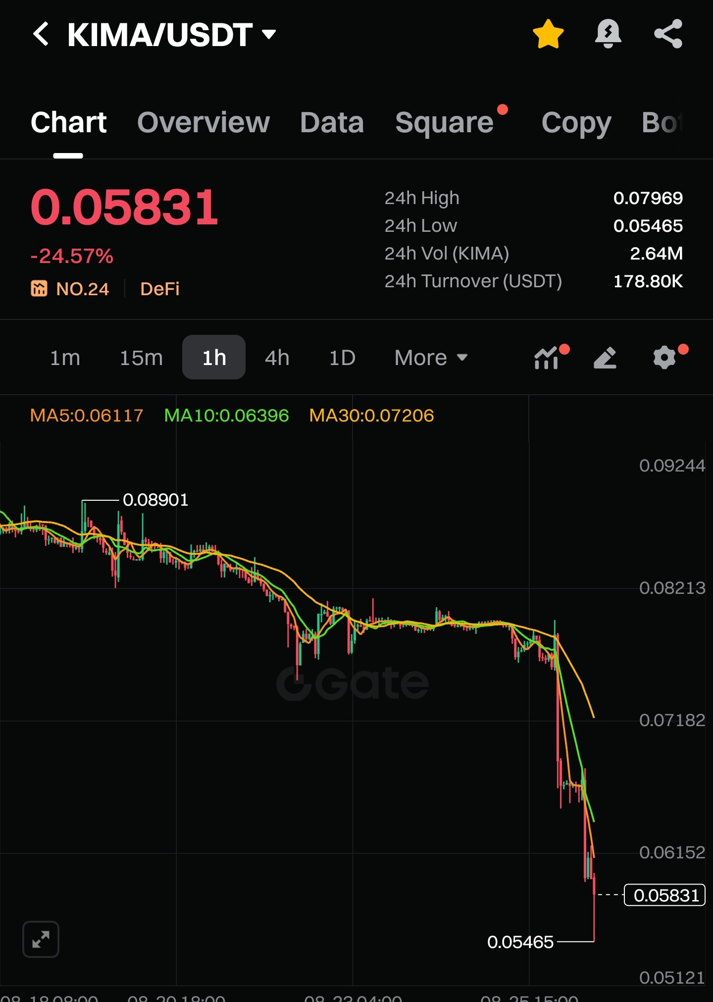 The author bought KIMA at $0.058, expecting a quick rebound.